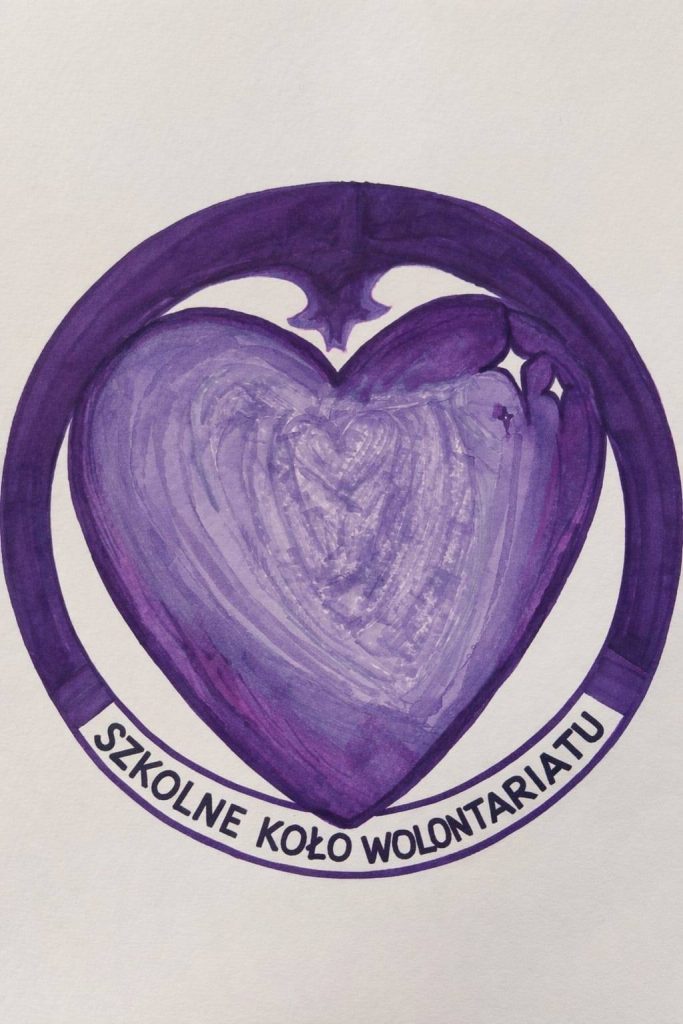 Od dziś Szkolne Koło Wolontariatu ma swoje wyjątkowe logo, zaprojektowane przez Olę z klasy 7b. Serce w centrum to symbol empatii i dobra, krąg oznacza wspólnotę, a fiolet podkreśla wrażliwość i zaangażowanie w pomaganie innym ![]()