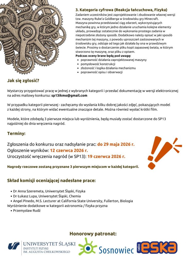 weź udział w konkursie, gdzie nie mierzysz się z zadaniami na kartce, a z realnym eksperymentem. Zbuduj model, zaprojektuj wirtualną maszynę, wyhoduj rośliny na ulubionych napojach.