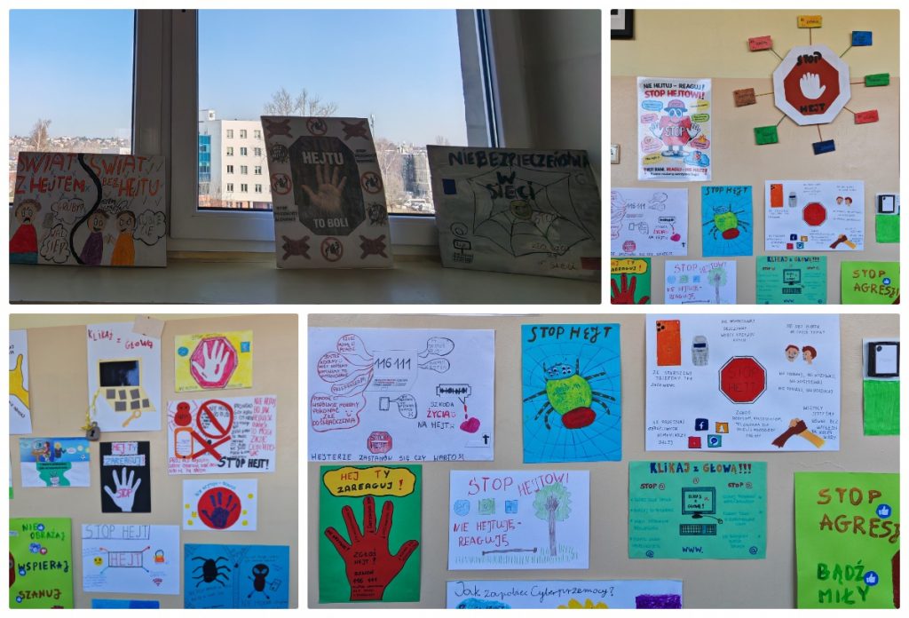 Jak co roku nasza szkoła włączyła się w obchody Międzynarodowego Dnia Bezpiecznego Internetu. Uczniowie pod opieką nauczycieli podejmowali różne działania mające na celu utrwalenie zasad bezpiecznego funkcjonowania w Internecie. Brali udział w webinariach i pogadankach, przygotowywali plakaty dotyczące przeciwdziałania cyberprzemocy.