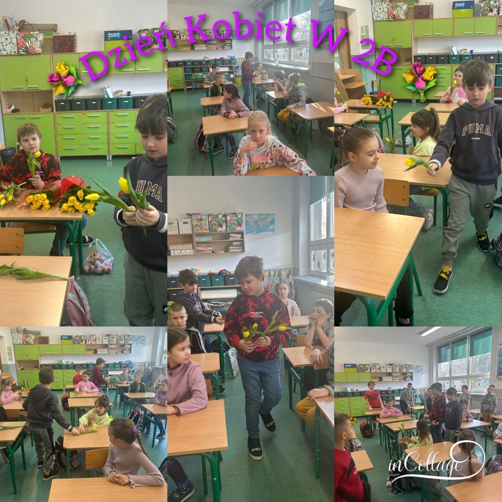 Chłopcy z klasy 2b z pomocą rodziców przygotowali dla swoich koleżanek oraz pań bardzo miłą niespodziankę. Z okazji Dnia Kobiet złożyli życzenia oraz wręczyli piękne kwiaty