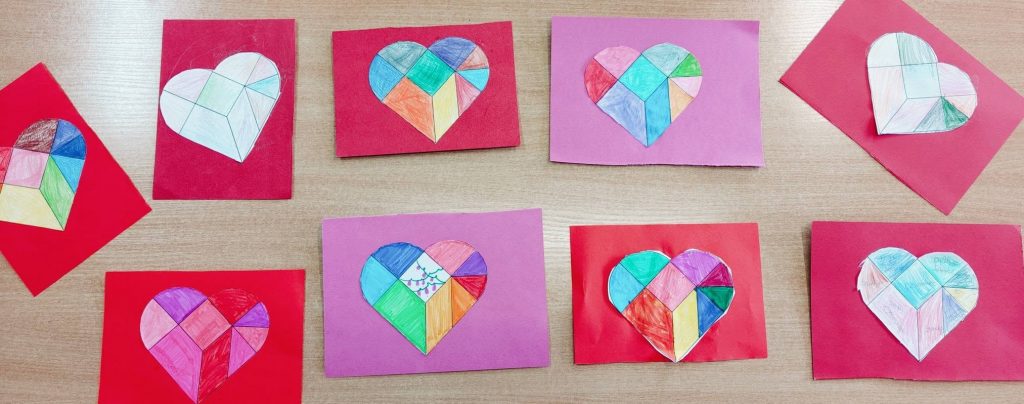 Dziś połączyliśmy matematykę z kreatywnością! W ramach kolejnego zadania „Walentynki” uczniowie wycinali, kolorowali i układali geometryczne serca walentynkowe. ![]()