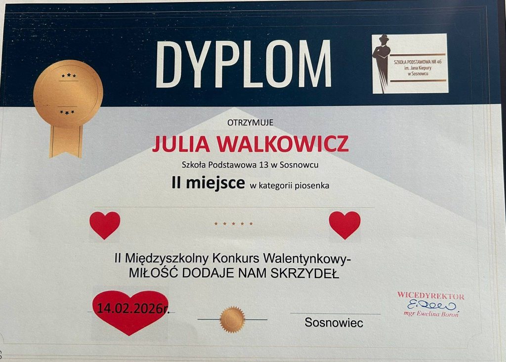 13 marca nasi uczniowie uczestniczyli w Międzyszkolnym Konkursie Recytatorskim organizowanym przez SP nr 45 w Sosnowcu. Dziś ogłoszono wyniki. Z radością informujemy, że nasz uczeń z klasy 4, Piotr Niewiara zdobył 1. miejsce. Serdecznie gratulujemy, a Emilii Nogackiej dziękujemy za godne reprezentowanie szkoły. Wielkie brawa i trzymamy kciuki za rozwijanie Waszych zdolności.