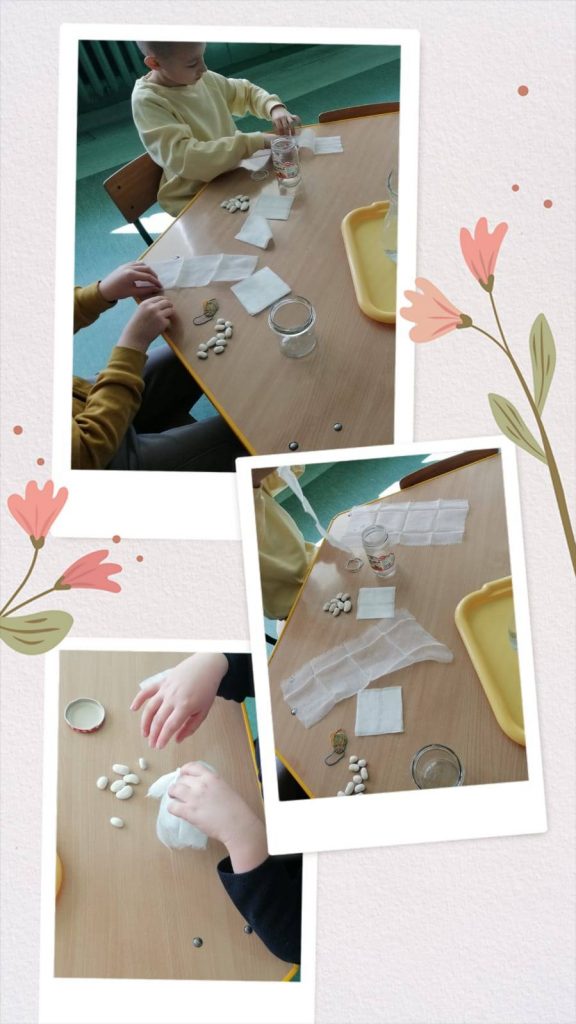 Uczniowie klasy 2a zmienili się w małych przyrodników, uczyli się przez działanie. Na początek przygotowali wszystkie potrzebne materiały. Następnie zapoznali się z instrukcją dotyczącą hodowli fasoli. Atmosfera sprzyjała zadawaniu pytań i odkrywaniu etapów rozwoju – od nasiona do rośliny. Uczniowie bezbłędnie wskazywali czynniki niezbędne do wzrostu roślin. Otrzymali karty do obserwacji i systematycznie będą notować swoje spostrzeżenia.