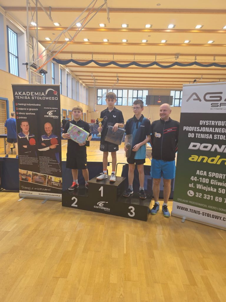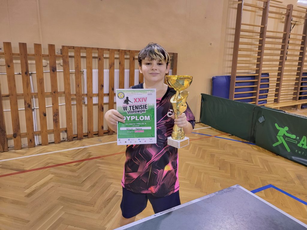 Wolnicki zajął 3 miejsce w kategorii młodzików. W zawodach startowali również Eryk Witek i Adrian Najaryan, którzy zdobyli cenne ogranie na poziomie wojewódzkim. W dniu 14.12.2025 rozegrano trzeci – finałowy turniej XXIV GP Jaworzna w tenisie stołowym. Znakomite wyniki osiągnęli uczniowie SP 13 w Sosnowcu, którzy w generalnej klasyfikacji zajęli całe podium w kategorii młodzików. Wygrał Mateusz Wolnicki, 2 miejsce zajął Olivier Tyliba, a trzeci był Adrian Najaryan. W kategorii do lat 18 Eryk Witek zajął 6 miejsce. Gratulujemy sportowej postawy! Trener drużyny szkolnej z SP 13 w Sosnowcu – mgr Adrian Eliasz.