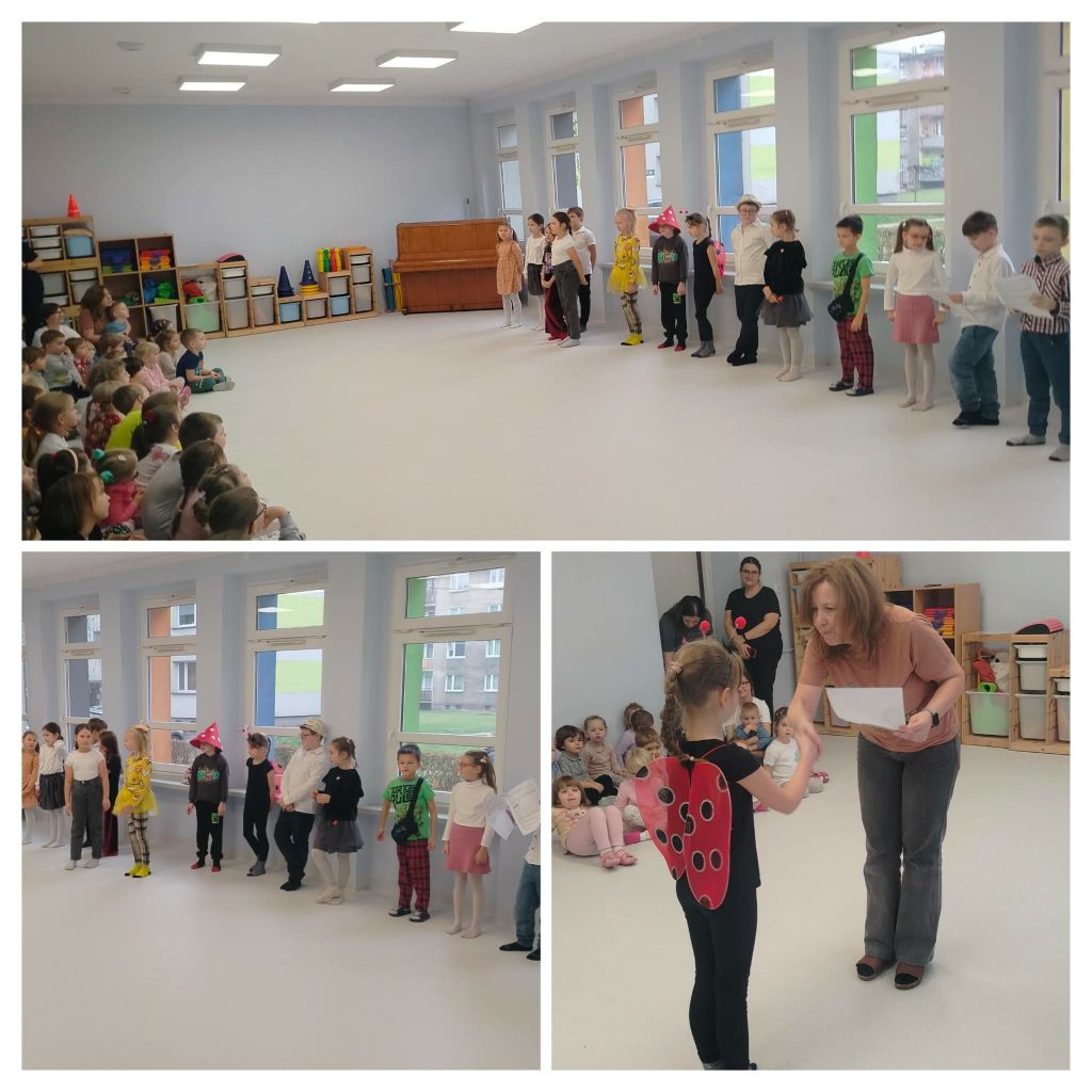 Uczniowie klasy II b odwiedzili w czwartek Przedszkole Miejskie nr 14, aby zaprezentować młodszym kolegom przedstawienie oparte na wierszach Jana Brzechwy. Dzieci z ogromnym zaangażowaniem wcieliły się w role bohaterów znanych utworów, takich jak ,,Kaczka Dziwaczka” czy ,,Leń”. Przedszkolaki z zainteresowaniem oglądały występ.